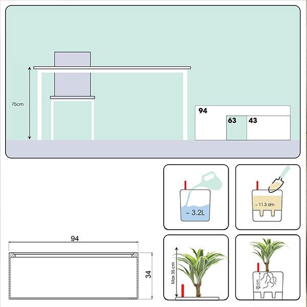 Thông số kỹ thuật chậu Fiber tự nhiên chữ nhật tự dưỡng: