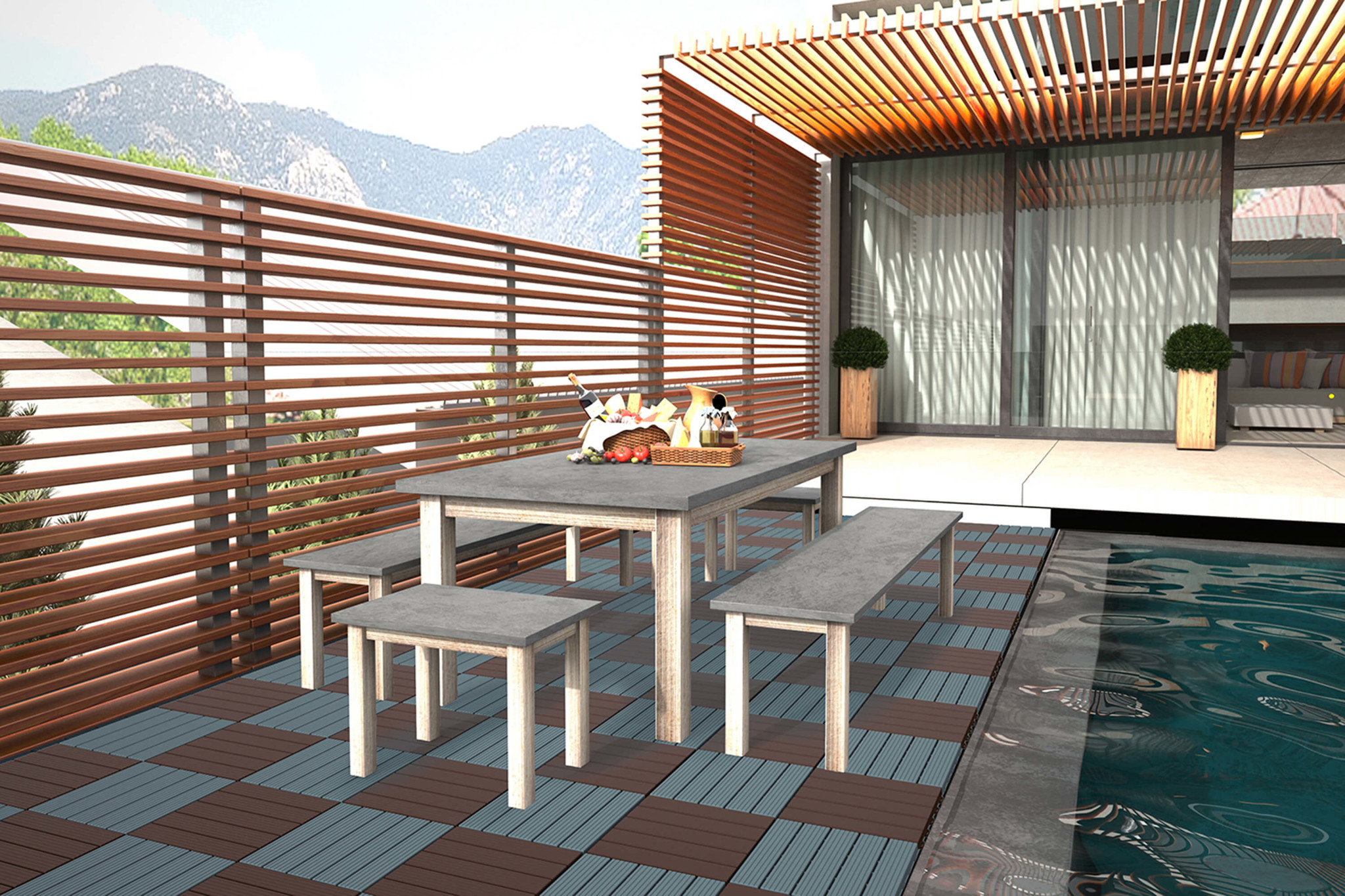 ✅ Thiết kế mô phỏng 5 nan , mang lại vẻ đẹp gần gũi và thẩm mỹ cao cho không gian sân vườn, ban công, hồ bơi, đường đi…