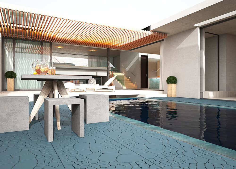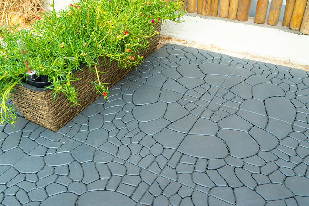 ✅ Thiết kế mô phỏng viên gạch có dạng hoa văn tự nhiên , mang lại vẻ đẹp gần gũi và thẩm mỹ cao cho không gian sân vườn, ban công, hồ bơi, đường đi…